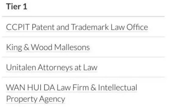 近日,國際著名知識產(chǎn)權(quán)媒體《知識產(chǎn)權(quán)管理》雜志(Managing Intellectual Property)公布“2016年知識產(chǎn)權(quán)之星商標(biāo)業(yè)務(wù)排行榜”(IP Stars 2016 Trade Mark Rankings)。集佳同時榮登商標(biāo)爭議業(yè)務(wù)及商標(biāo)訴訟業(yè)務(wù)中國區(qū)第一梯隊(Tier 1)。