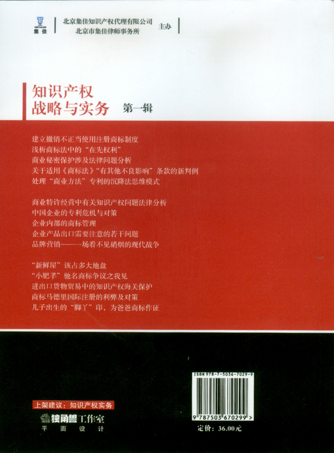 該書的出版得到了法律出版社的大力支持。根據(jù)法律出版社與集佳的共同規(guī)劃,《知識產(chǎn)權(quán)戰(zhàn)略與實(shí)務(wù)》連續(xù)出版物計(jì)劃每年出版2至3本。目前,《知識產(chǎn)權(quán)戰(zhàn)略與實(shí)務(wù)(第二輯)》也即將出版,第三輯正在制作中。
