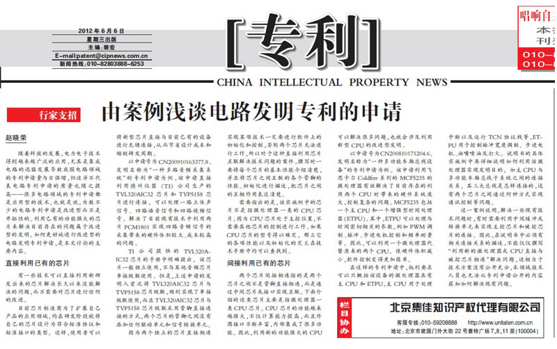 《中國知識產(chǎn)權(quán)報》:由案例淺談電路發(fā)明專利的申請