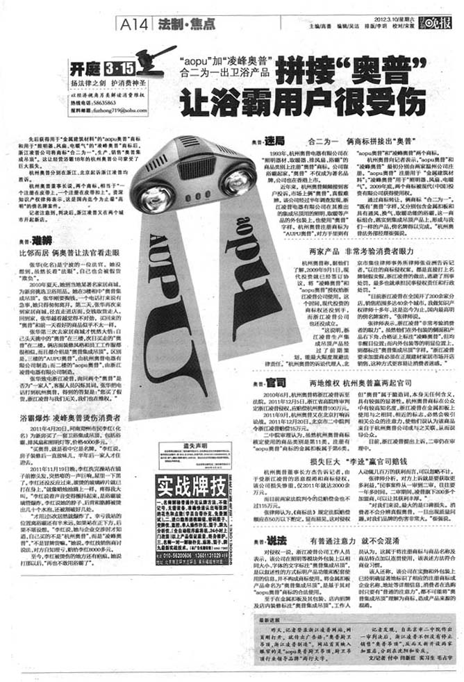 《法制晚報(bào)》:拼接'奧普"讓浴霸用戶很受傷
