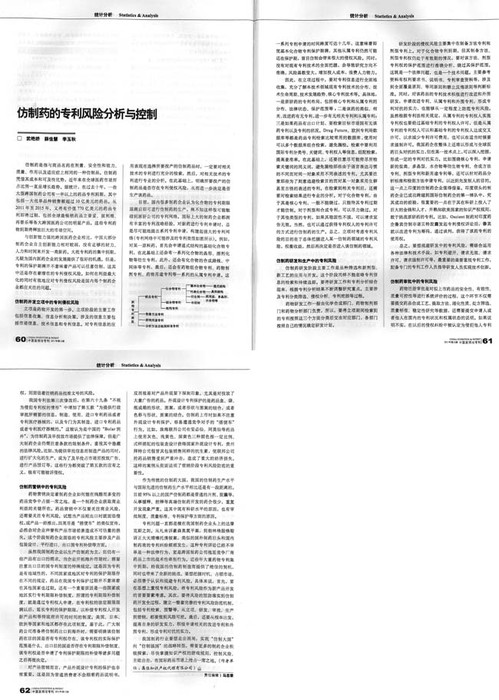 《中國發(fā)明與專利》:仿制藥的專利風險分析與控制