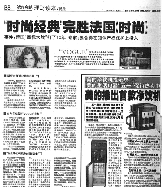 《沈陽晚報》:“時尚經(jīng)典”完勝法國《時尚》