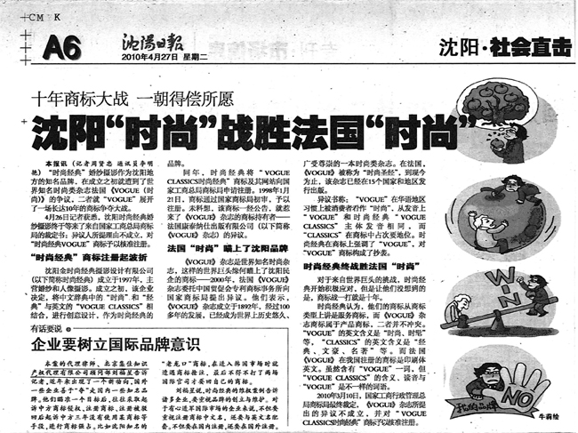《沈陽日報》:沈陽“時尚”戰(zhàn)勝法國“時尚”