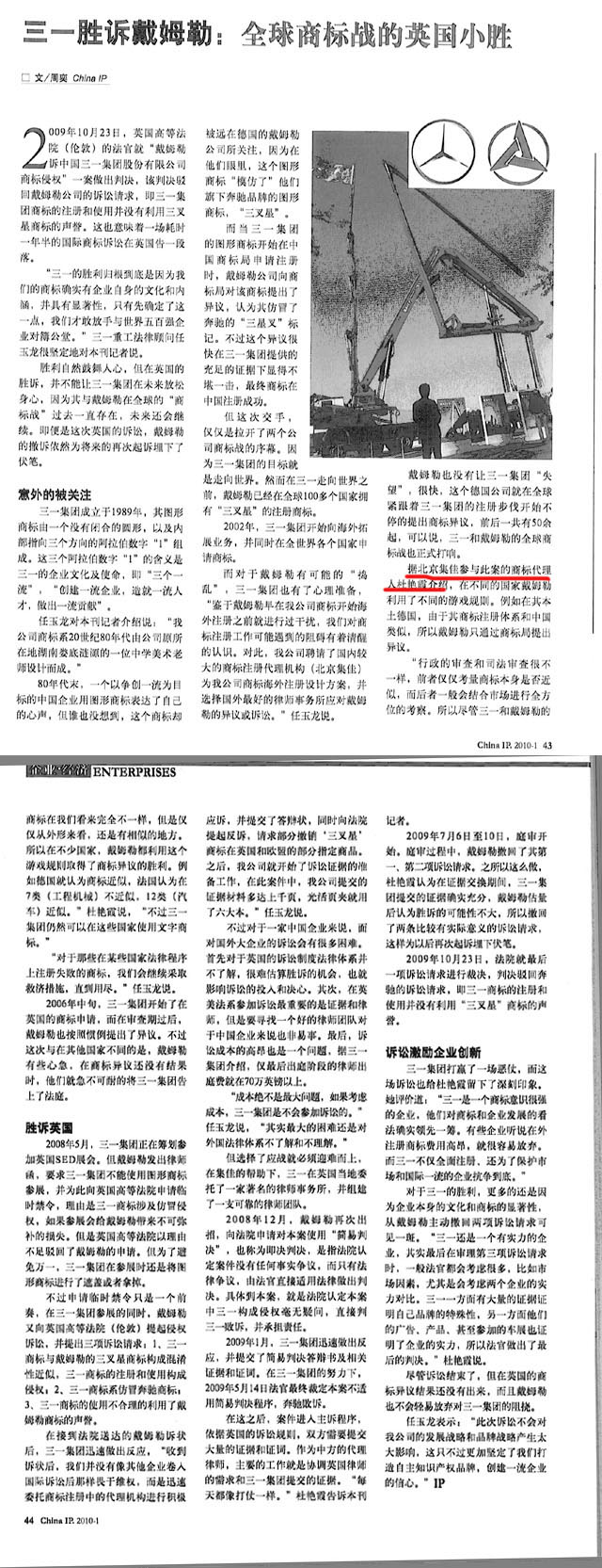 《China IP》:三一勝訴戴姆勒:全球商標(biāo)戰(zhàn)的英國(guó)小勝
