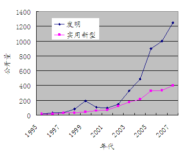 圖2 從1995年以來中國企業(yè)在中國申請的專利的公開量的變化