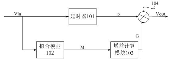 例如,在下述一件美國專利申請中,公開了一種信號處理辦法,通過預(yù)設(shè)的擬合模型擬合計(jì)算出輸入信號的擬合幅度,對擬合幅度進(jìn)行判斷并根據(jù)判斷結(jié)果進(jìn)行處理得到對應(yīng)的增益信號,基于增益信號對延時(shí)處理輸入信號得到的延時(shí)信號進(jìn)行處理得到的輸出信號。通過上述結(jié)構(gòu)簡單的信號處理裝置及系統(tǒng)進(jìn)行信號處理,不僅計(jì)算量小,而且還能提高處理信號的效率和處理效果。具體結(jié)構(gòu)請參見下述附圖。