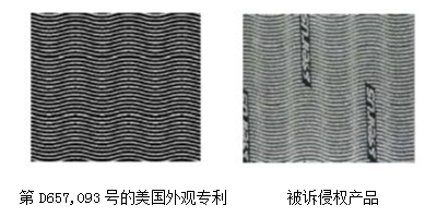 在初審判決中,地區(qū)法院認(rèn)可了哥倫比亞提出賽魯斯產(chǎn)品侵權(quán)的理由,隨后陪審團(tuán)判決賽魯斯賠償哥倫比亞超過(guò)300萬(wàn)美元的賠償金。地區(qū)法院在簡(jiǎn)易判決中駁回了賽魯斯的訴訟觀點(diǎn),即第D657,093號(hào)的美國(guó)外觀專(zhuān)利與被訴產(chǎn)品圖案之間存在顯著差異。賽魯斯指出兩種圖案在波浪厚度、間距和方向均存在差異,以及其商標(biāo)在整個(gè)圖案中的顯著存在。關(guān)于賽魯斯的觀點(diǎn),地區(qū)法院進(jìn)行了駁回,并提出在侵權(quán)分析中應(yīng)完全忽略商標(biāo)的存在。