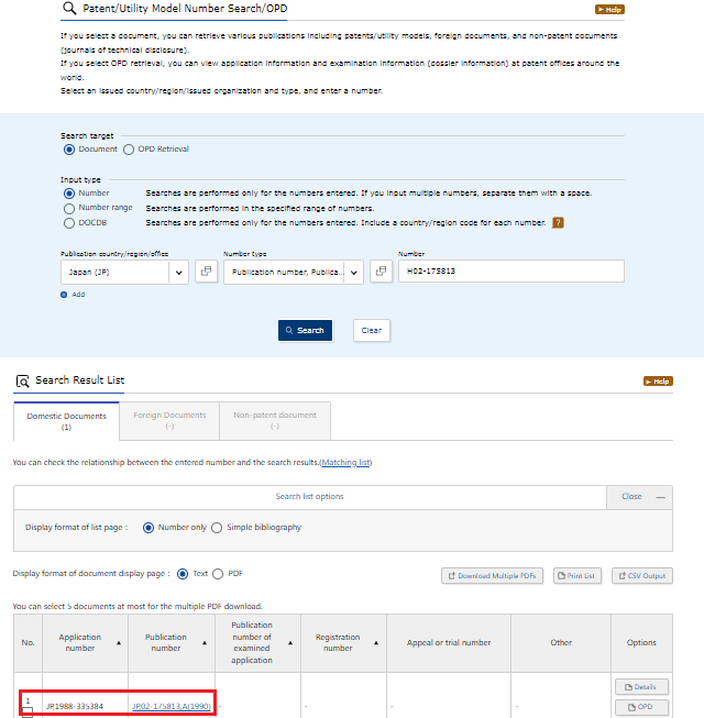 例如,在已知申請(qǐng)公開(kāi)號(hào)的情況下,通??梢酝ㄟ^(guò)Patent/Utility Model Number Search/OPD或Simple Search等方式進(jìn)行檢索。