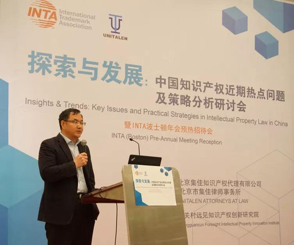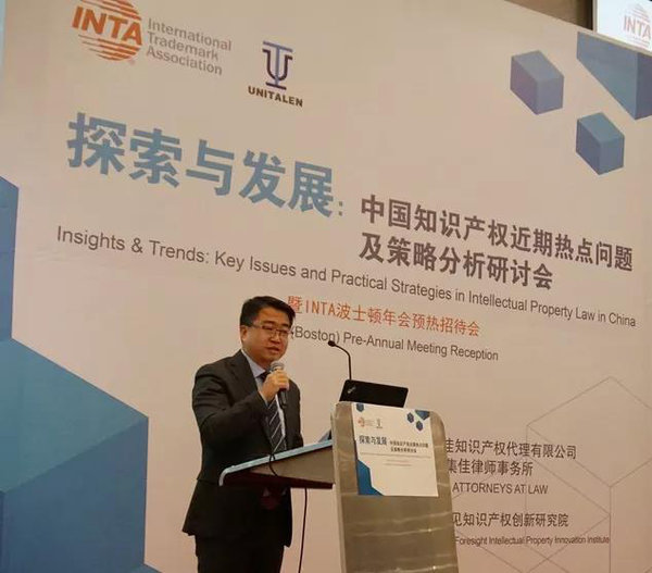 隨后,李永波先生作為主辦方INTA代表發(fā)言。他首先感謝集佳多年來對INTA相關(guān)工作的大力支持,同時他還表示,INTA 在近幾年與中國的聯(lián)系越來越密切,這都離不開所有業(yè)內(nèi)人士和專家們的關(guān)注與支持,在此向所有同行以及業(yè)界人士表達誠摯的謝意。李永波先生介紹,2019年INTA第141屆年會活動將于5月18~22日在美國波士頓舉行,希望通過本次預(yù)熱活動,使國內(nèi)的代理機構(gòu)對國際商標(biāo)協(xié)會有更深入的了解,同時希望廣大企業(yè)和業(yè)界同仁積極關(guān)注并參與INTA年會活動。