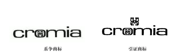 “cromia及圖” 商標(biāo)(下稱引證商標(biāo),如圖)由意大利拉瓦瑞茲恩佩利特瑞股份有限公司(下稱意大利拉瓦公司)于2004年1月5日創(chuàng)作完成,并于2004年3月率先于意大利公開使用在箱包等產(chǎn)品上。