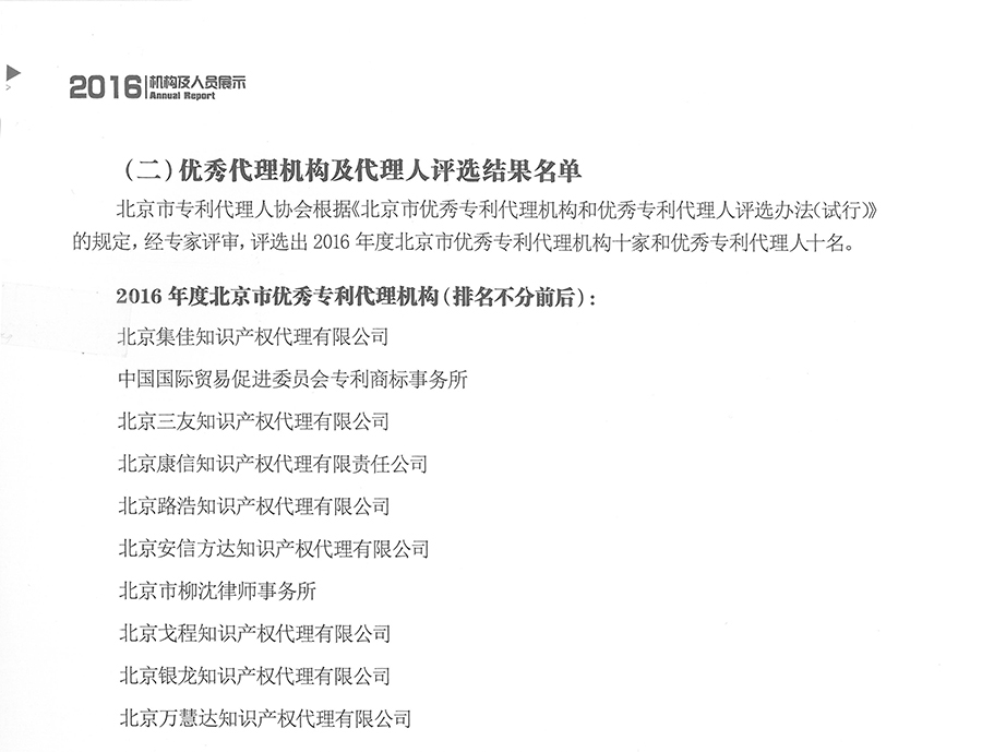 日前,北京市知識產(chǎn)權局發(fā)布《2016年度北京市專利代理年報》,在北京專利代理機構業(yè)務排名中,集佳以代理量18841件的成績在發(fā)明專利申請量中再次蟬聯(lián)第一,并在多領域有效發(fā)明專利量排名中成績矚目。此外,經(jīng)過專家評審,集佳憑借綜合的業(yè)務能力和優(yōu)質的專業(yè)服務,連續(xù)四年入選“北京市優(yōu)秀專利代理機構”,并在北京市專利代理人協(xié)會于2016年首次啟動的專利代理機構等級評定工作中榮獲最高星級(AAAA)代理機構。