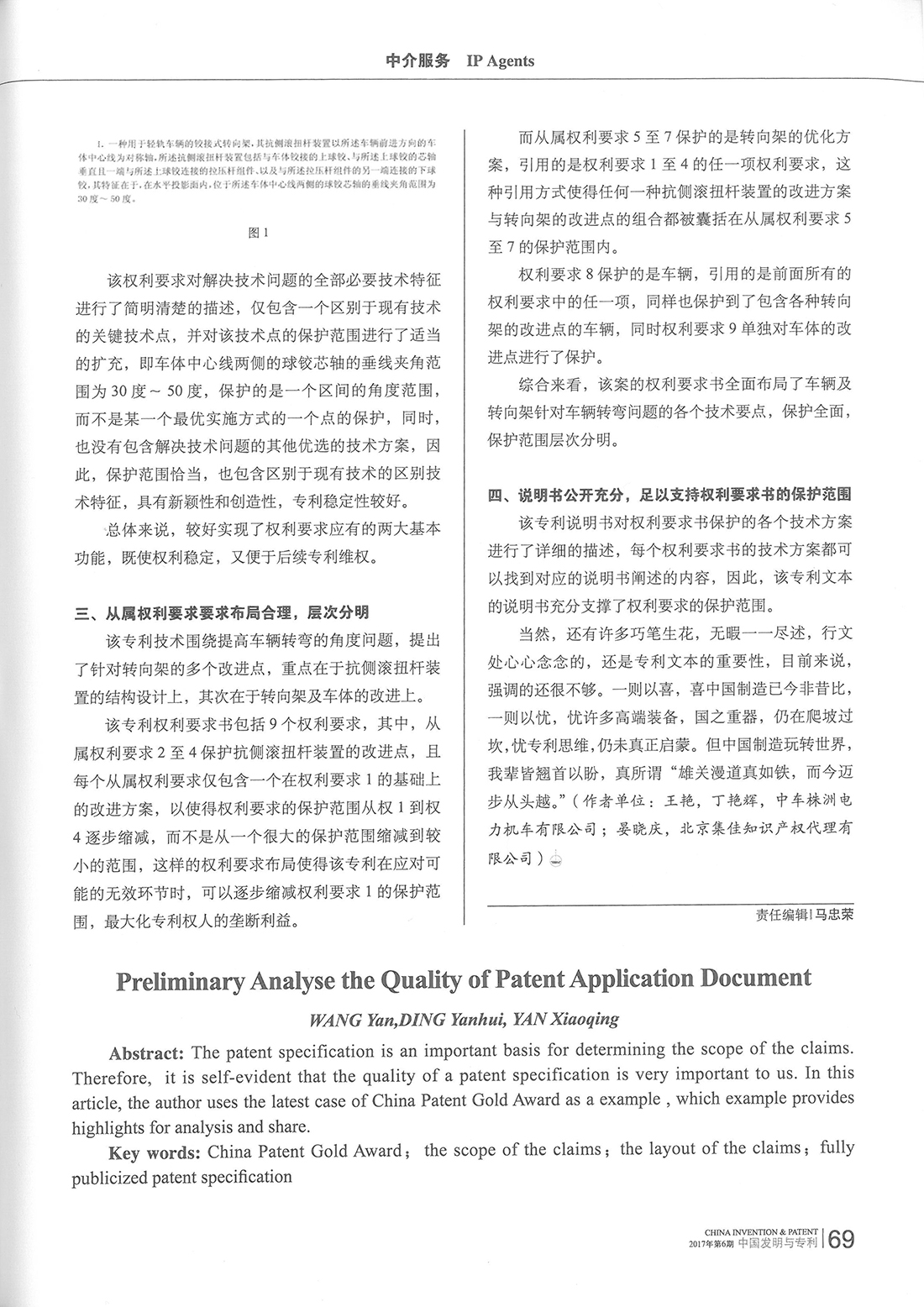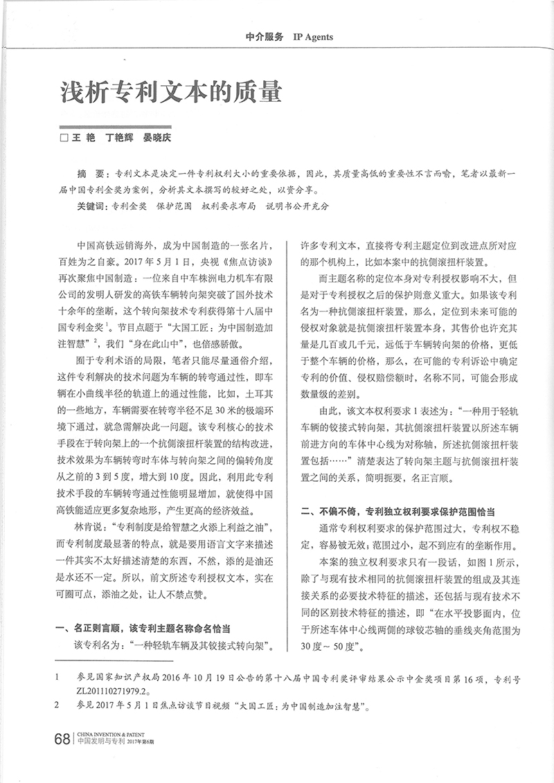 集佳文章《淺析專利文本的質(zhì)量》在《發(fā)明與專利》發(fā)表
