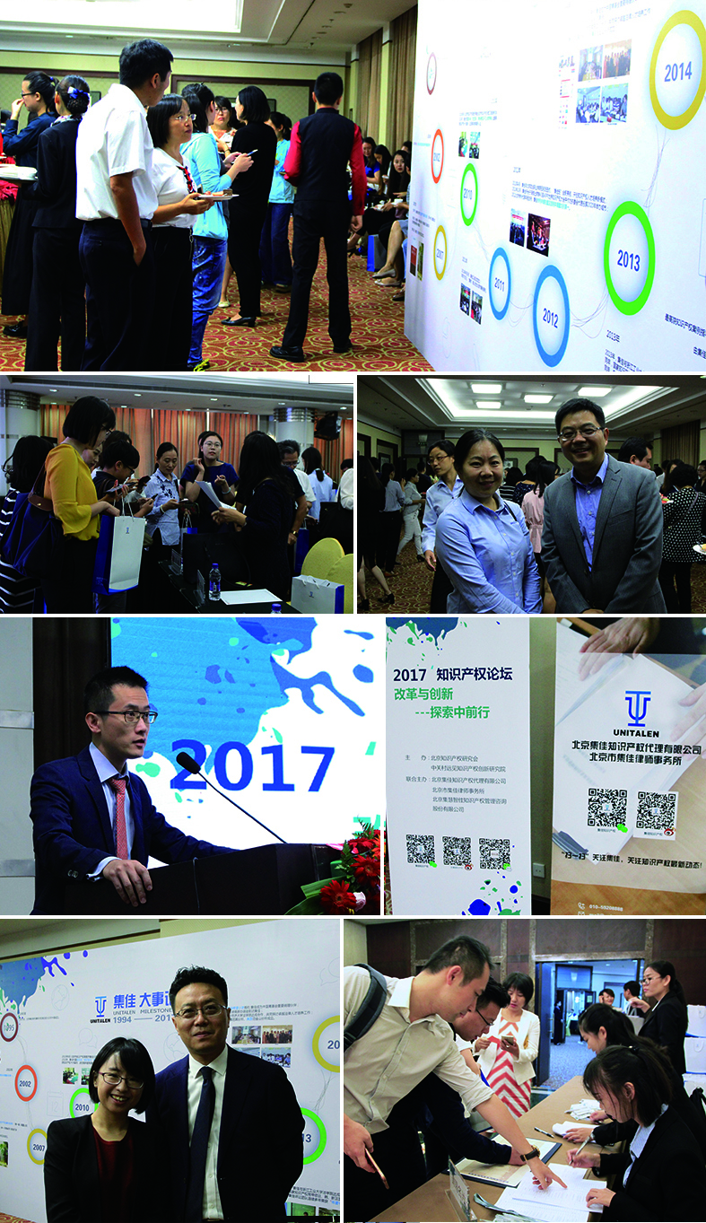 在這月朗風(fēng)清、桂香沁人的金秋之際,集佳知識(shí)產(chǎn)權(quán)又一次迎來(lái)與廣大客戶的歡聚。2017年9月21-22日,集佳第13屆知識(shí)產(chǎn)權(quán)論壇在北京隆重舉行,本次論壇由北京知識(shí)產(chǎn)權(quán)研究會(huì)、中關(guān)村遠(yuǎn)見知識(shí)產(chǎn)權(quán)創(chuàng)新研究院、北京集佳知識(shí)產(chǎn)權(quán)代理有限公司、北京市集佳律師事務(wù)所、北京集慧智佳知識(shí)產(chǎn)權(quán)管理咨詢股份有限公司聯(lián)合主辦,來(lái)自全國(guó)各行業(yè)的200余位企業(yè)Iper前來(lái)參加。