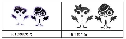 通過(guò)上述列舉,其中案例三、案例四屬于較為常見(jiàn)的因侵犯著作權(quán)而被不予核準(zhǔn)注冊(cè)(宣告無(wú)效)的案件情形。案例三中,系爭(zhēng)商標(biāo)與著作權(quán)作品完全相同;案例四中,系爭(zhēng)商標(biāo)是將兩個(gè)著作權(quán)作品組合并稍作修改而來(lái)。對(duì)于這兩種情況,屬于較為簡(jiǎn)單的判斷系爭(zhēng)商標(biāo)與著作權(quán)作品是否相同的情形,一般僅僅從商標(biāo)本身出發(fā),直接觀察即可得之。