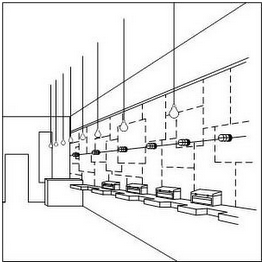 如提交店面外觀和內部裝潢的立體商標申請,可通過在圖片中表明虛實線,同時通過商標描述告知“虛線僅表示店面形狀的示例,并不構成商標的一部分”,以表明要求受該立體商標保護的部分僅為以下圖片中的實線,如以下示例2和示例3所示。