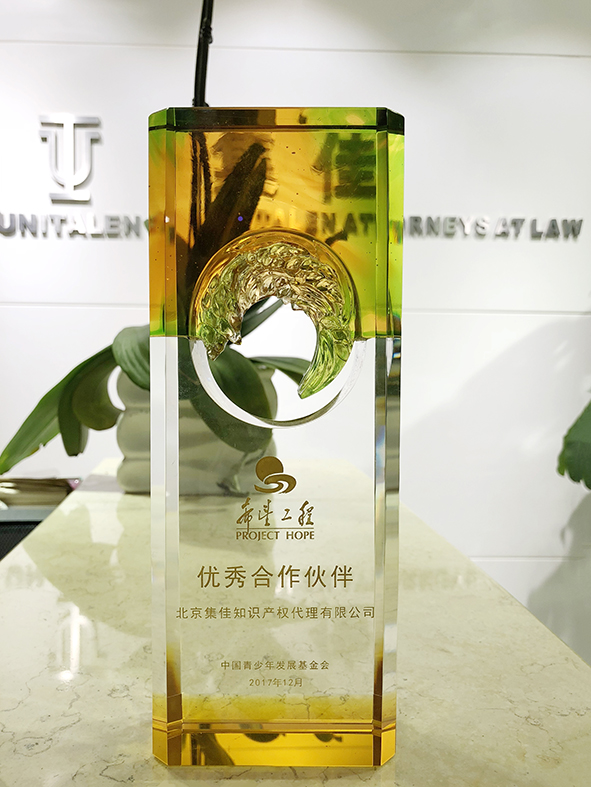 近日,集佳收到了中國青少年發(fā)展基金會頒發(fā)的“希望工程優(yōu)秀合作伙伴”獎與“2017年度希望工程貢獻(xiàn)獎”,特別表彰于澤輝所長帶領(lǐng)集佳對希望工程作出的支持與貢獻(xiàn)。此外,青基會在《中國青年報》刊發(fā)整版感謝函,對包括集佳在內(nèi)的100多家單位和企業(yè)衷心致謝。