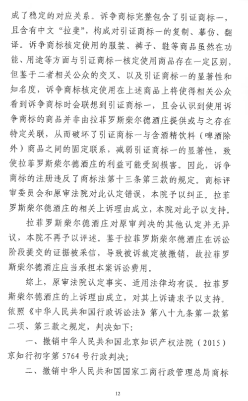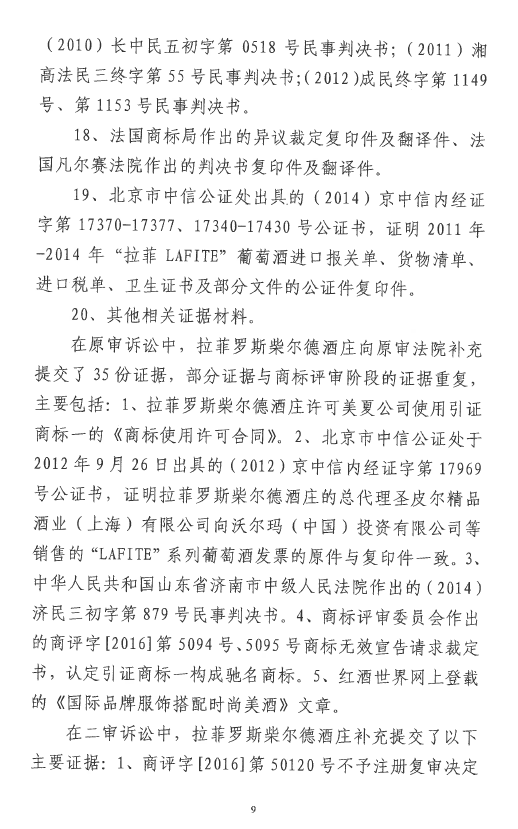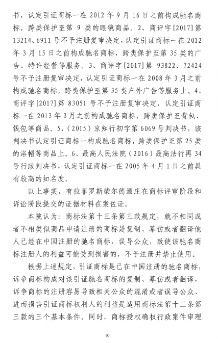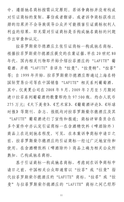 自2016年以來,商評委、北京知識產(chǎn)權法院已經(jīng)先后在十幾個裁定或行政判決中認定“LAFITE”為馳名商標,但大多還在行政訴訟程序之中。本案是首個終審判決,對“LAFITE”在中國的馳名商標保護之路,具有里程碑式的重要意義。