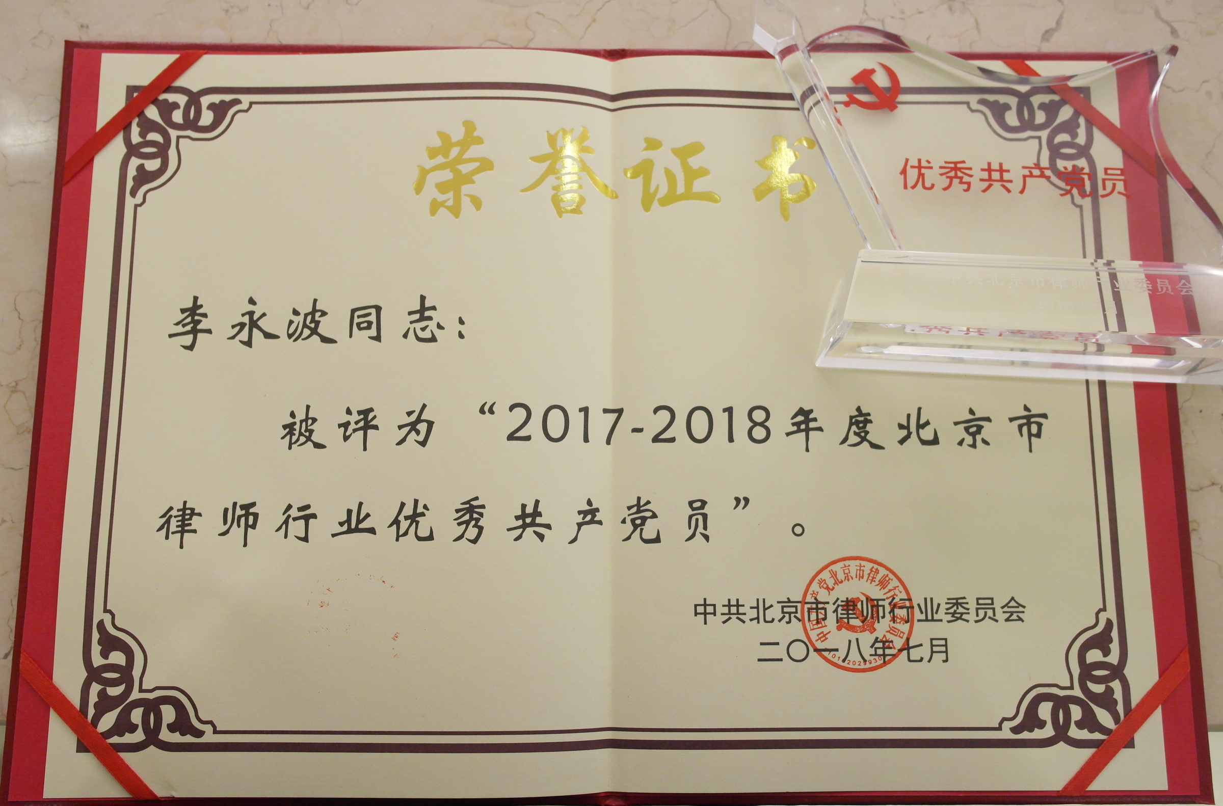 為進(jìn)一步加強(qiáng)基層黨組織建設(shè),切實(shí)發(fā)揮黨支部的戰(zhàn)斗堡壘和黨員的先鋒模范作用,北京市及各區(qū)律師行業(yè)黨委在律師隊(duì)伍中開展了先進(jìn)黨組織、優(yōu)秀共產(chǎn)黨員、優(yōu)秀黨務(wù)工作者和黨建之友的評(píng)選活動(dòng)。經(jīng)朝陽(yáng)區(qū)協(xié)會(huì)黨委的綜合審核及評(píng)定,集佳律師事務(wù)所黨支部被授予“2018年度先進(jìn)黨組織”殊榮,李永波律師、張海芳律師、王荷舒律師被授予朝陽(yáng)區(qū)“優(yōu)秀共產(chǎn)黨員”榮譽(yù)稱號(hào),此外,李永波律師還被評(píng)為“2017-2018年度北京市律師行業(yè)優(yōu)秀共產(chǎn)黨員”。