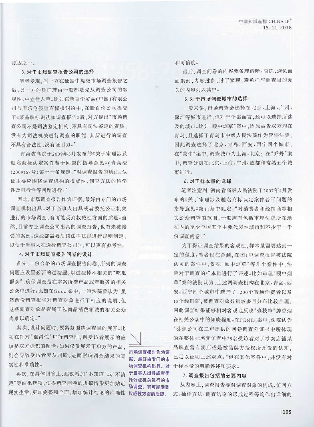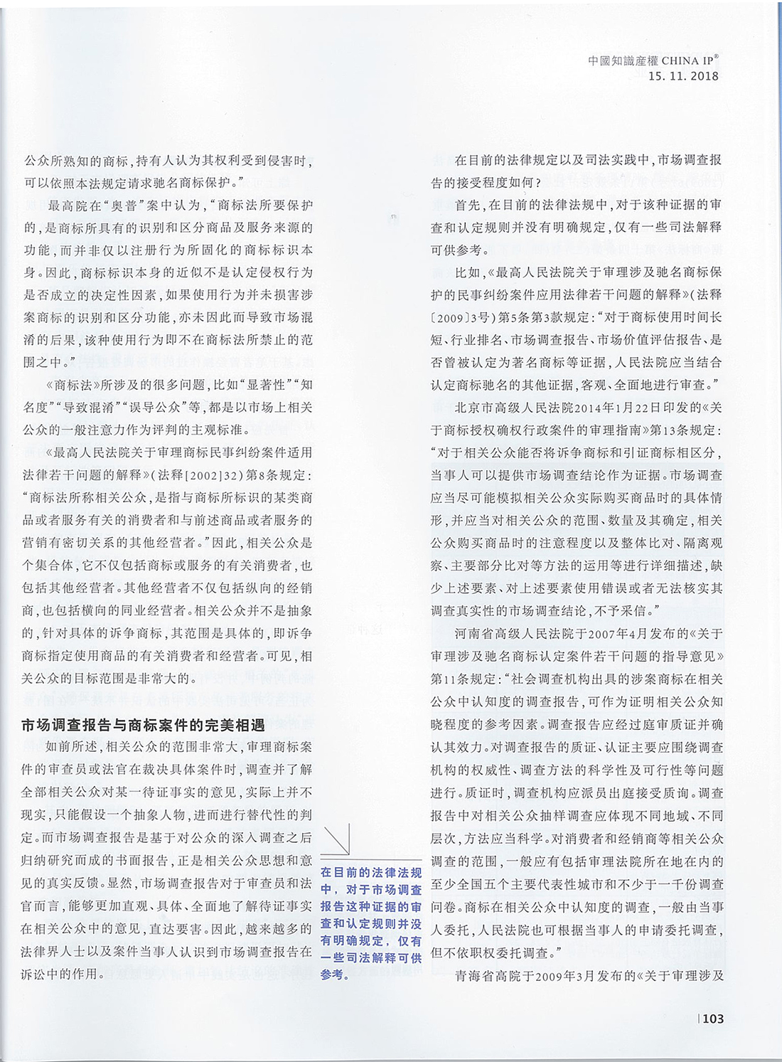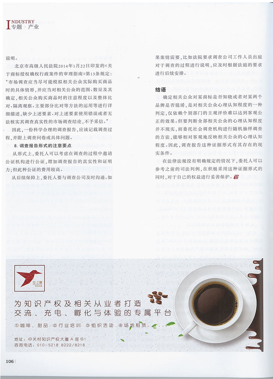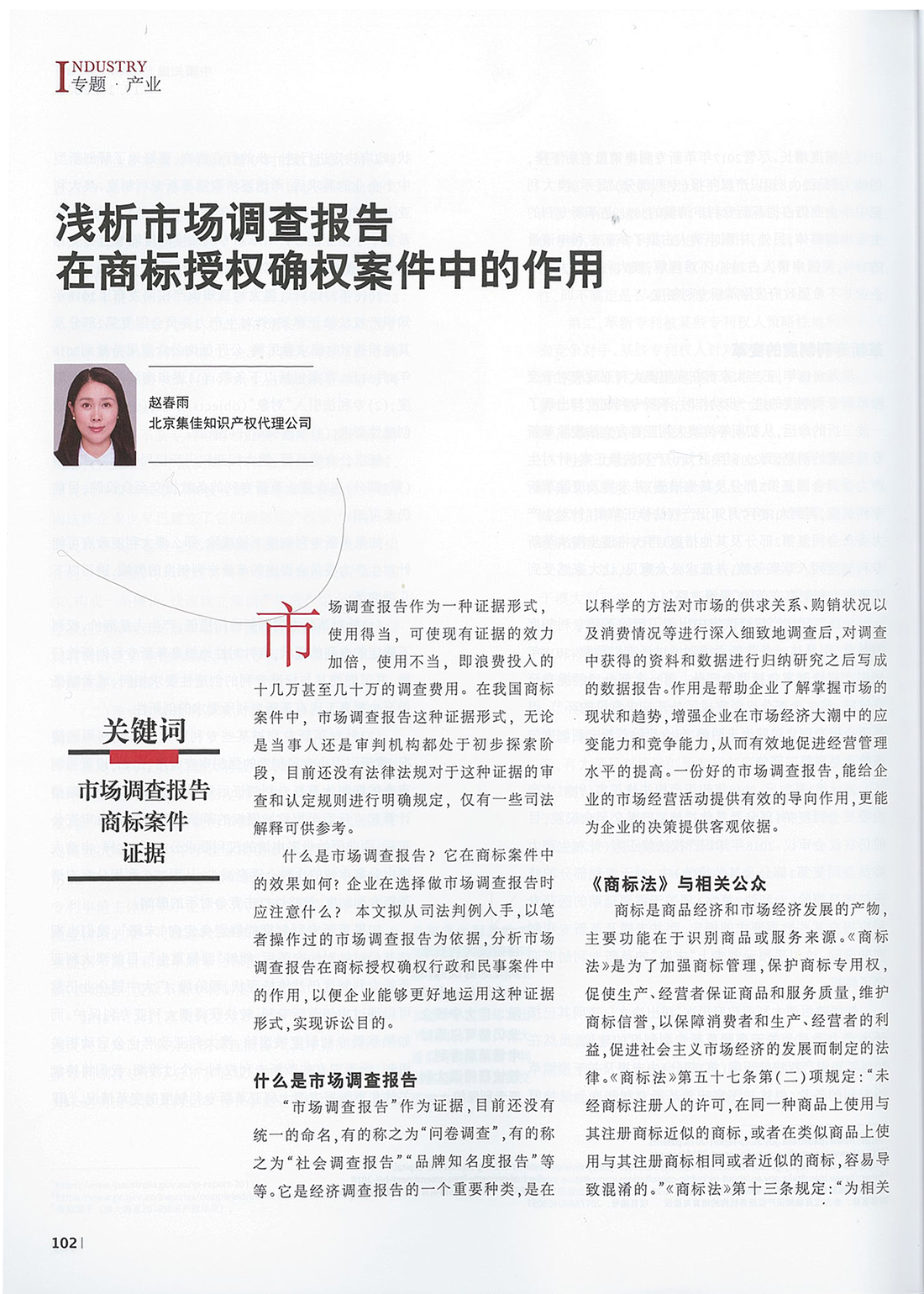 集佳文章《淺析市場調(diào)查報告在商標(biāo)授權(quán)確權(quán)案件中的作用》在《中國知識產(chǎn)權(quán)》發(fā)表