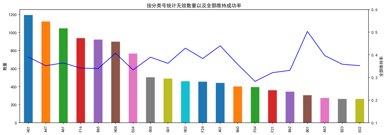 3.2 按分類號統(tǒng)計無效數(shù)量以及全部維持決定占比