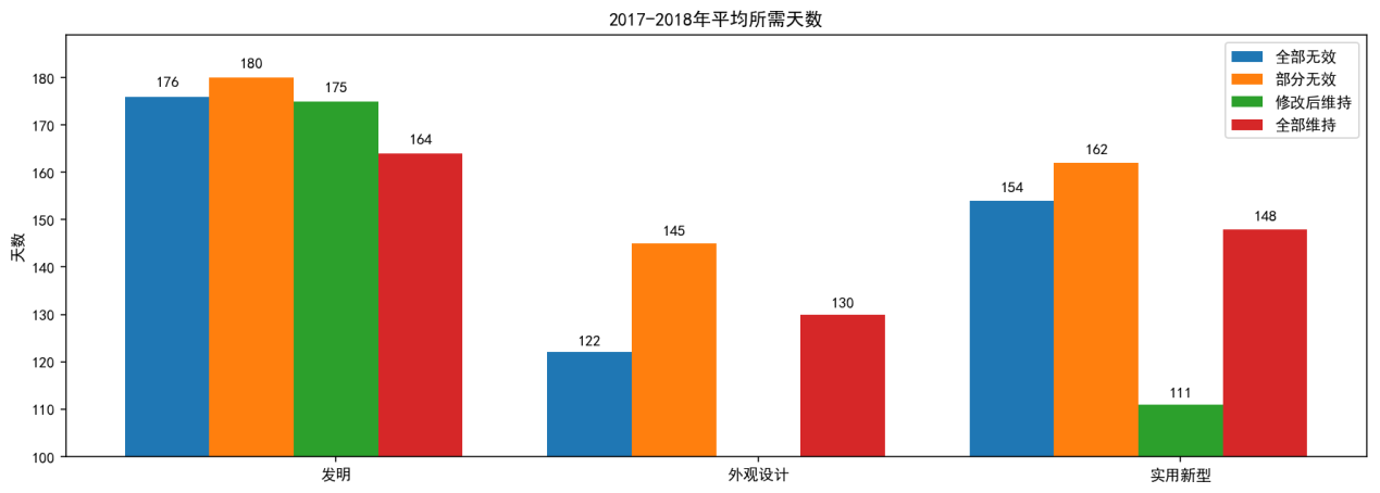 上圖為2008-2018年度無效請求作出決定平均所用天數(shù)。從上圖可以看出: