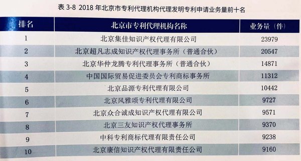2018北京專利代理年報發(fā)布 集佳第五次榮登發(fā)明專利申請量榜首
