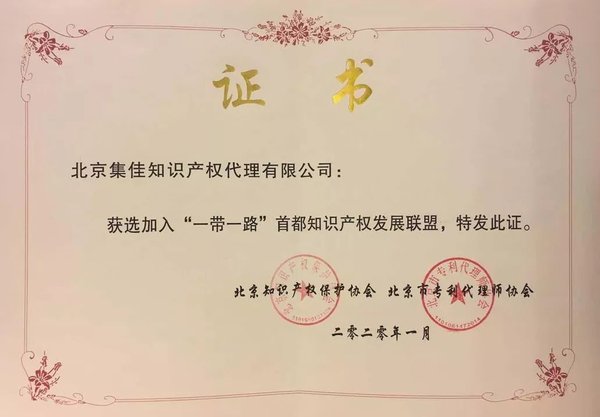 為了貫徹落實國家及首都知識產(chǎn)權戰(zhàn)略,進一步提升首都知識產(chǎn)權國際化發(fā)展水平,2020年1月7日,由北京市知識產(chǎn)權局指導,北京知識產(chǎn)權保護協(xié)會、北京市專利代理師協(xié)會聯(lián)合發(fā)起的“一帶一路”首都知識產(chǎn)權發(fā)展聯(lián)盟正式成立。北京集佳知識產(chǎn)權代理有限公司獲選加入發(fā)展聯(lián)盟,成為首批成員單位之一。