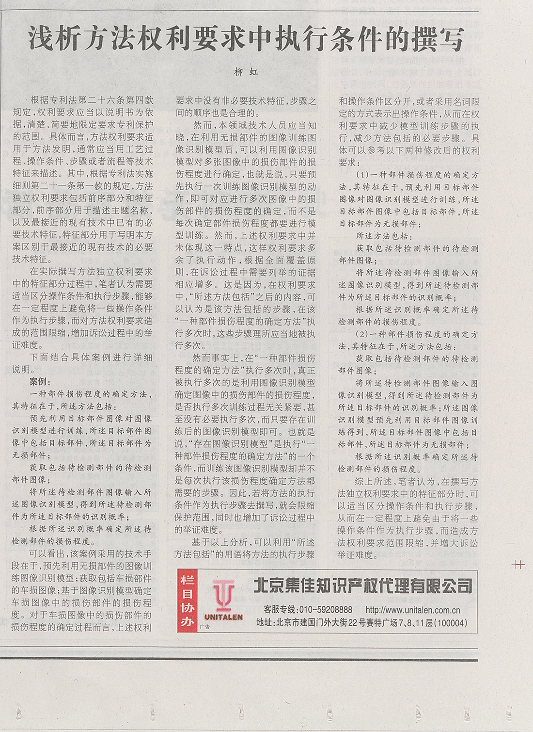 集佳文章《淺析方法權利要求中執(zhí)行條件的撰寫》在《中國知識產權報》發(fā)表