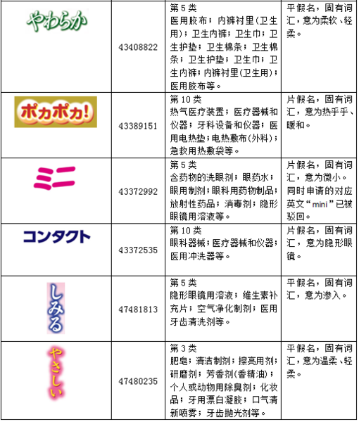 首先,以下為未經(jīng)駁回程序,順利獲得注冊的日文假名商標。