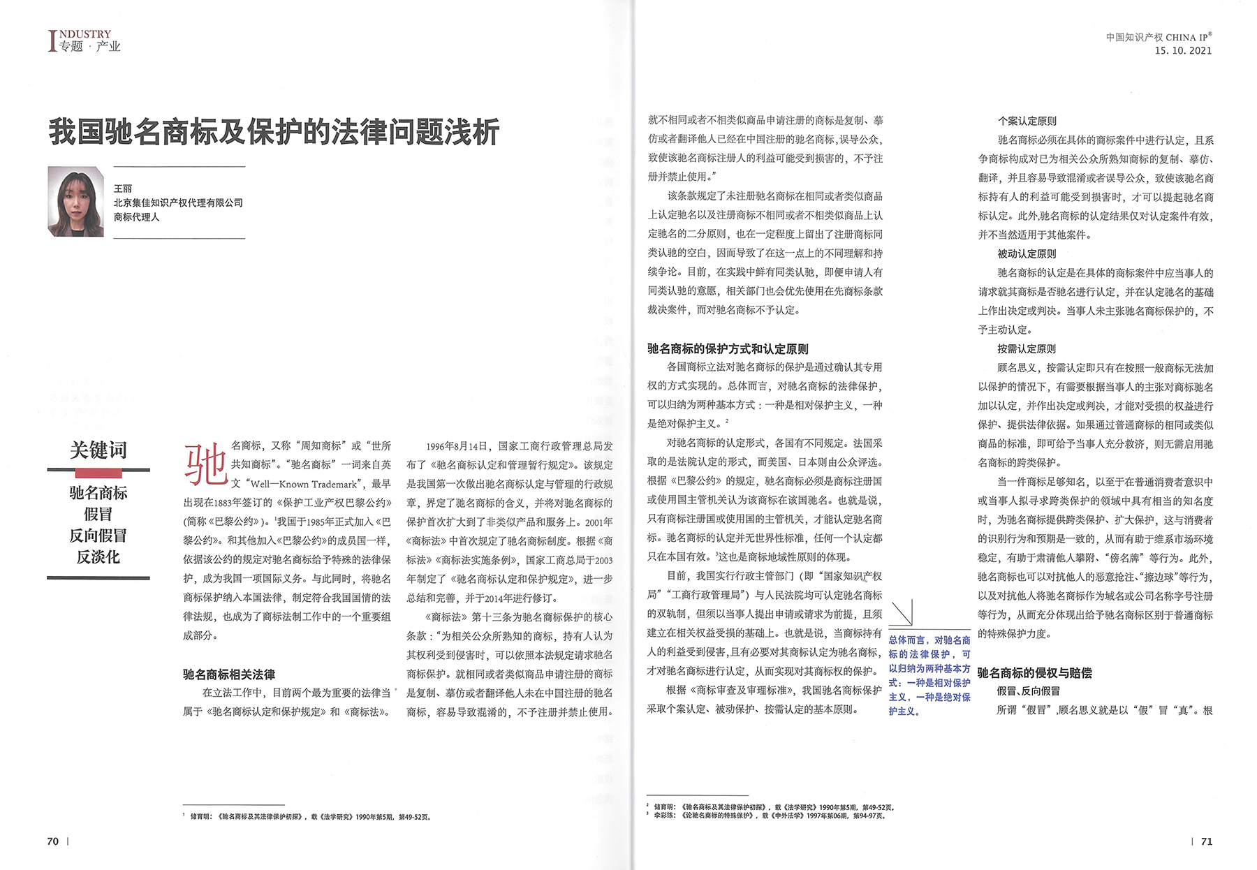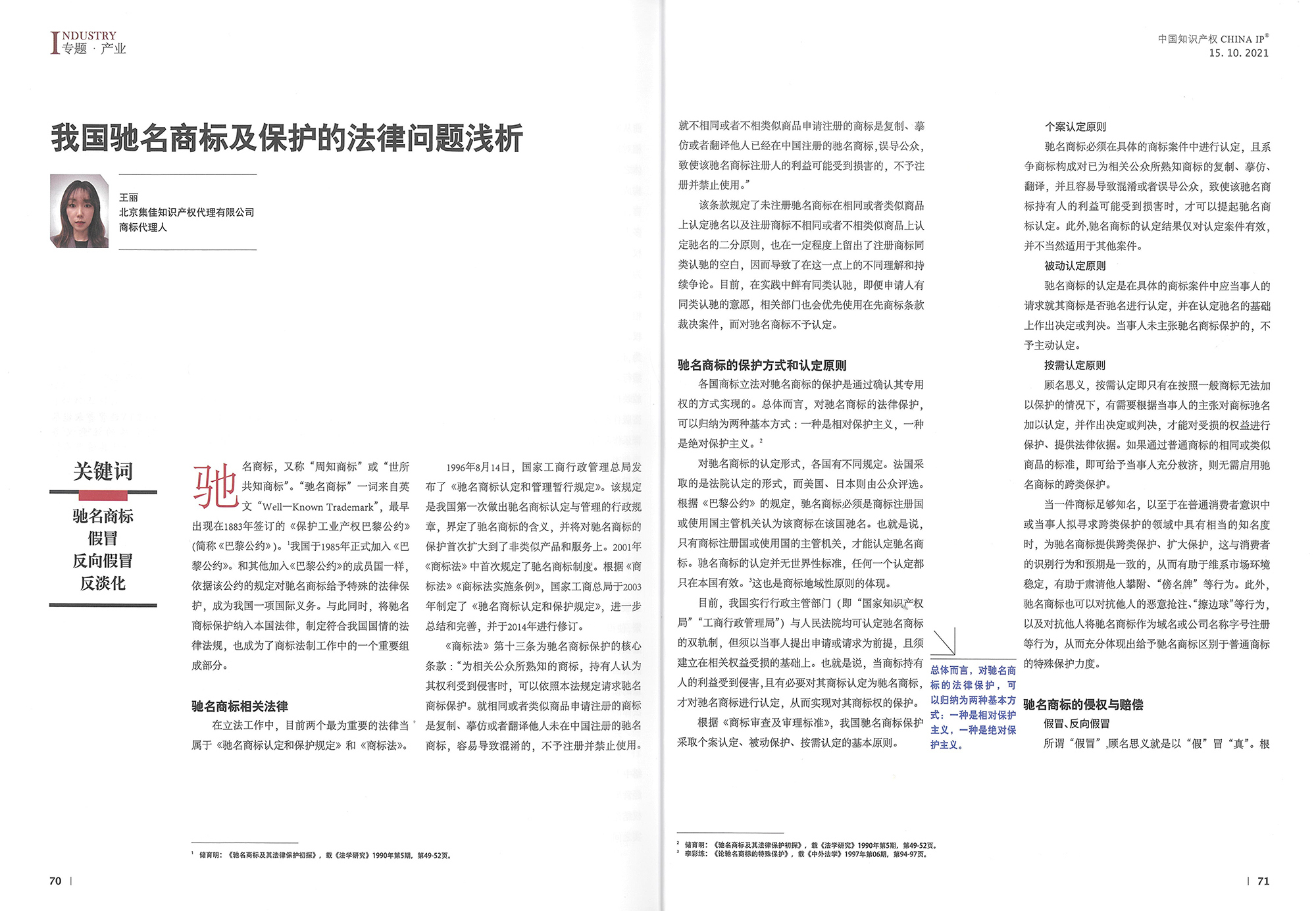 集佳文章《我國(guó)馳名商標(biāo)及保護(hù)的法律問題淺析》在《中國(guó)知識(shí)產(chǎn)權(quán)》發(fā)表