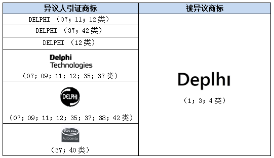 一名土耳其個人申請了“DEPLHI”第1;3;4類商標(biāo),指定使用在第1類化學(xué)品、第3類漂白、清潔劑和第4類工業(yè)用油、粘合劑等商品上。DELPHI TECHNOLOGIES IP LIMITED公司對該商標(biāo)提起異議,異議人并無第1;3;4類在先商標(biāo),而是基于其他類別上在先注冊的“DELPHI”商標(biāo),援引土耳其《工業(yè)產(chǎn)權(quán)法》第6條第1款“混淆誤認(rèn)”和第6條第9款“惡意”條款進(jìn)行異議。雙方商標(biāo)情況如下:
