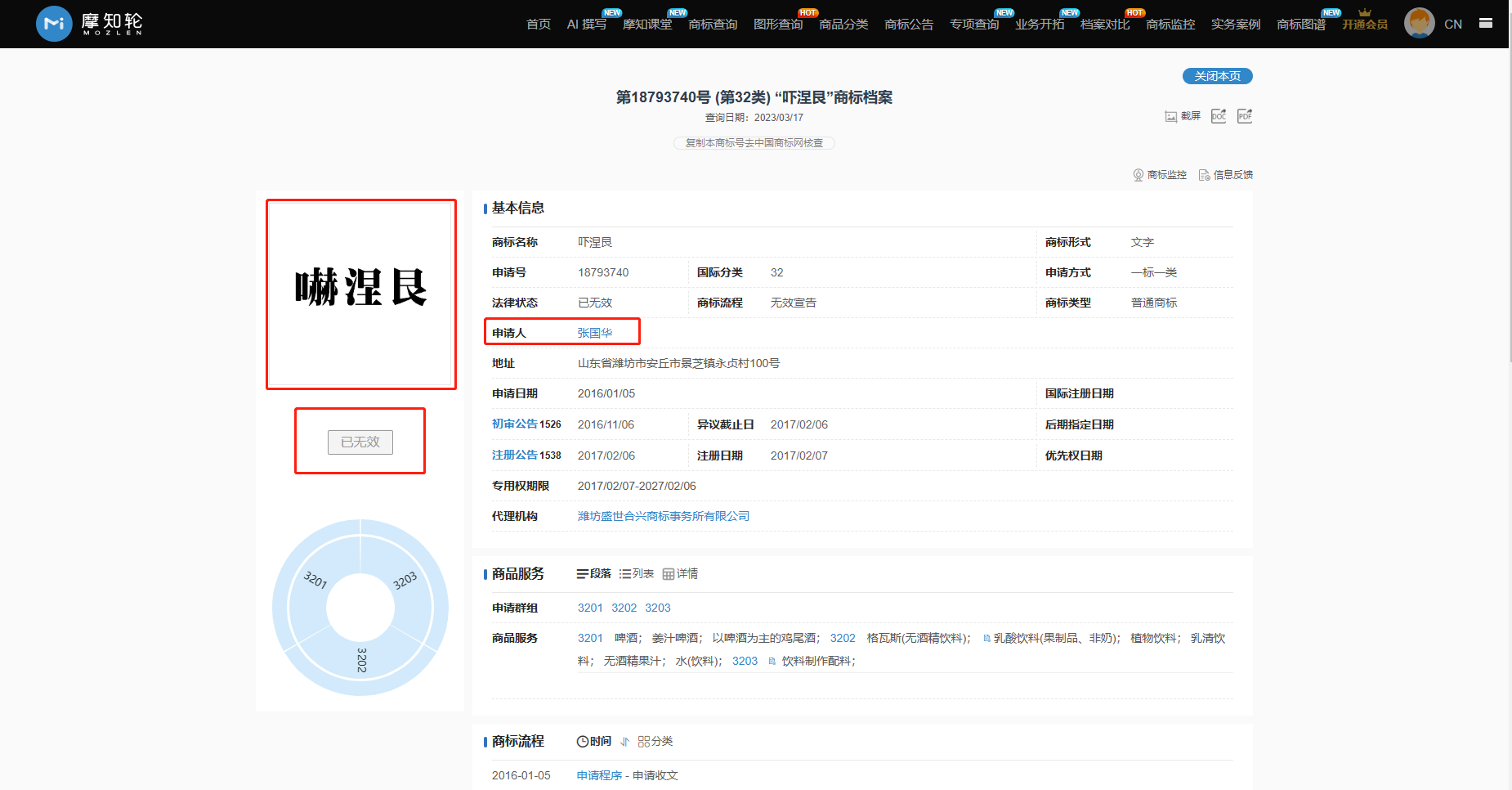 1.在系爭商標(biāo)申請(qǐng)注冊日之前,他人已在先登記或使用其字號(hào)。