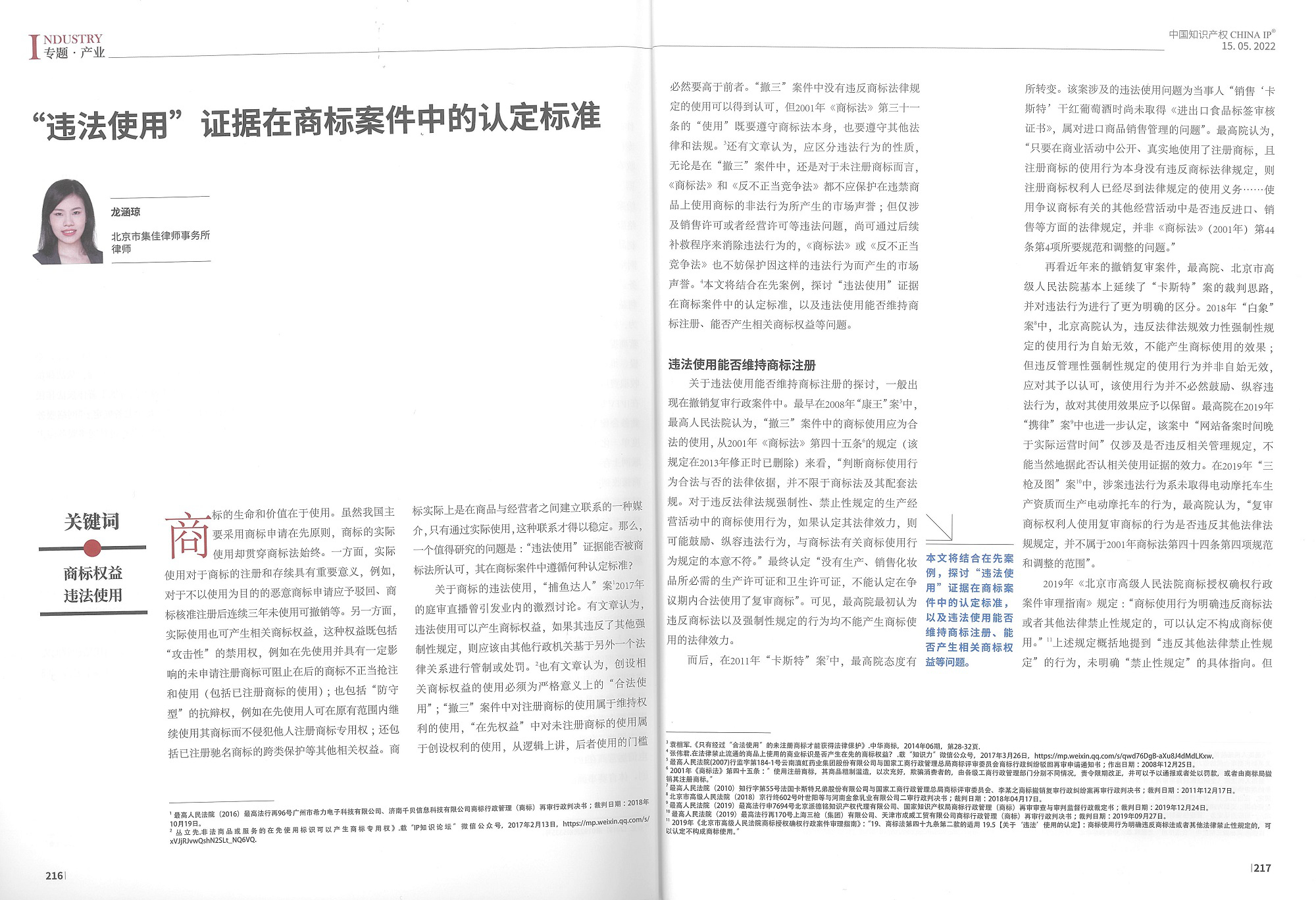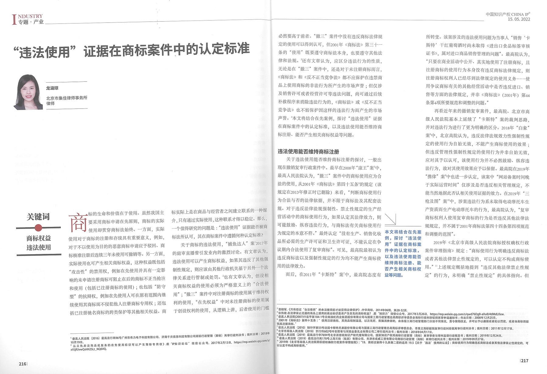 集佳文章《“違法使用”證據在商標案件中的認定標準》在《中國知識產權》發(fā)表