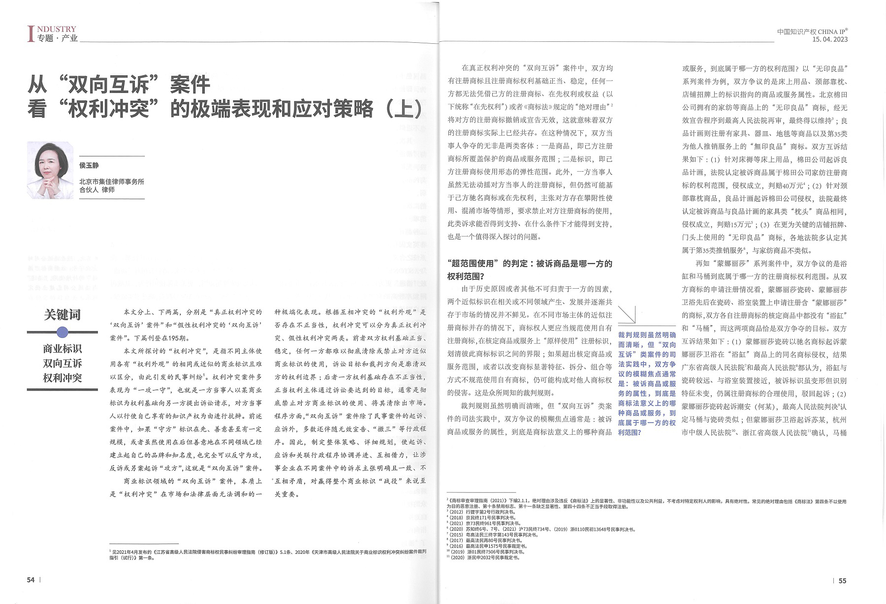 集佳文章《從“雙向互訴”案件看“權利沖突”的極端表現(xiàn)和應對策略(上)》在《中國知識產(chǎn)權》發(fā)表