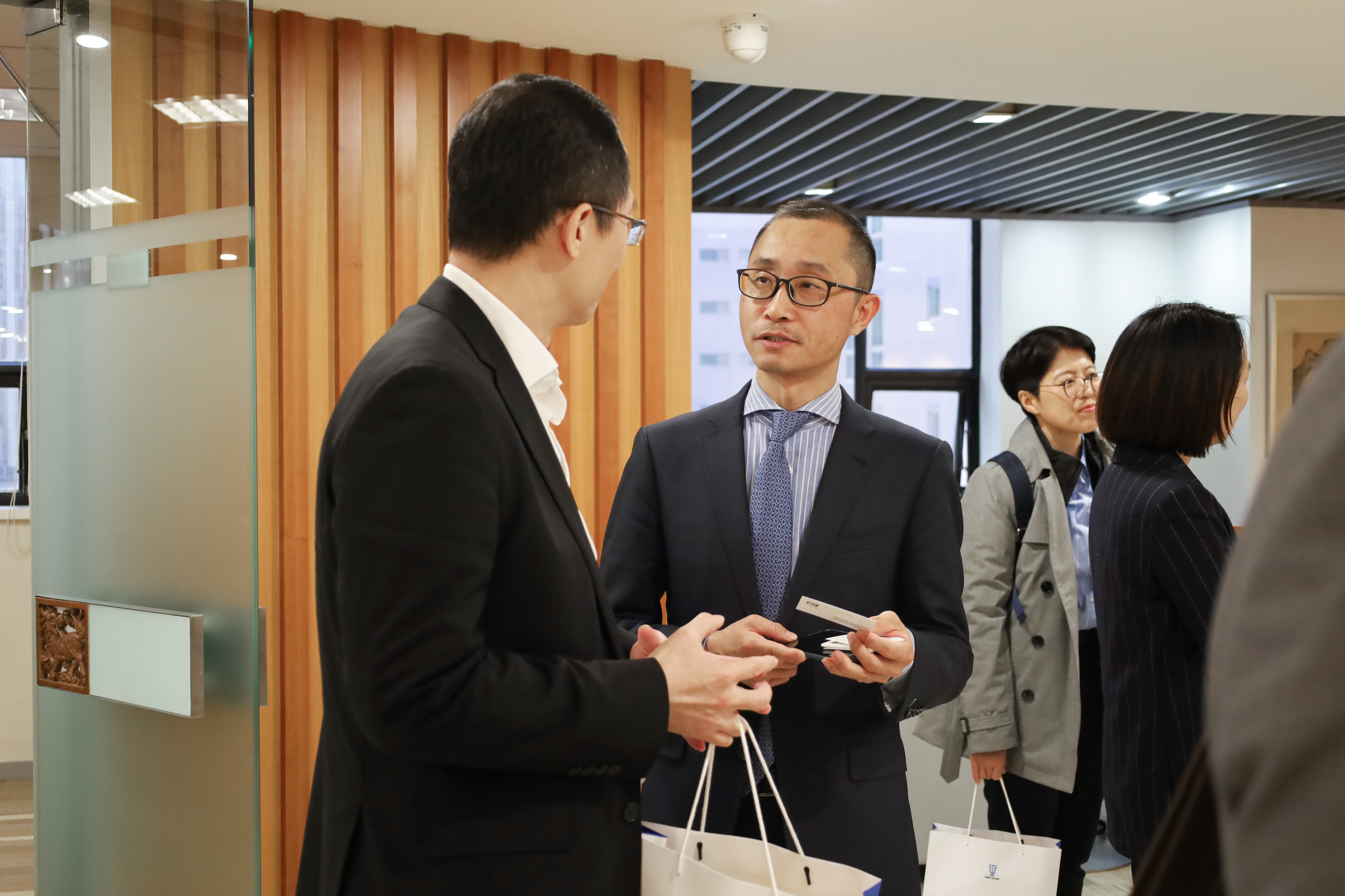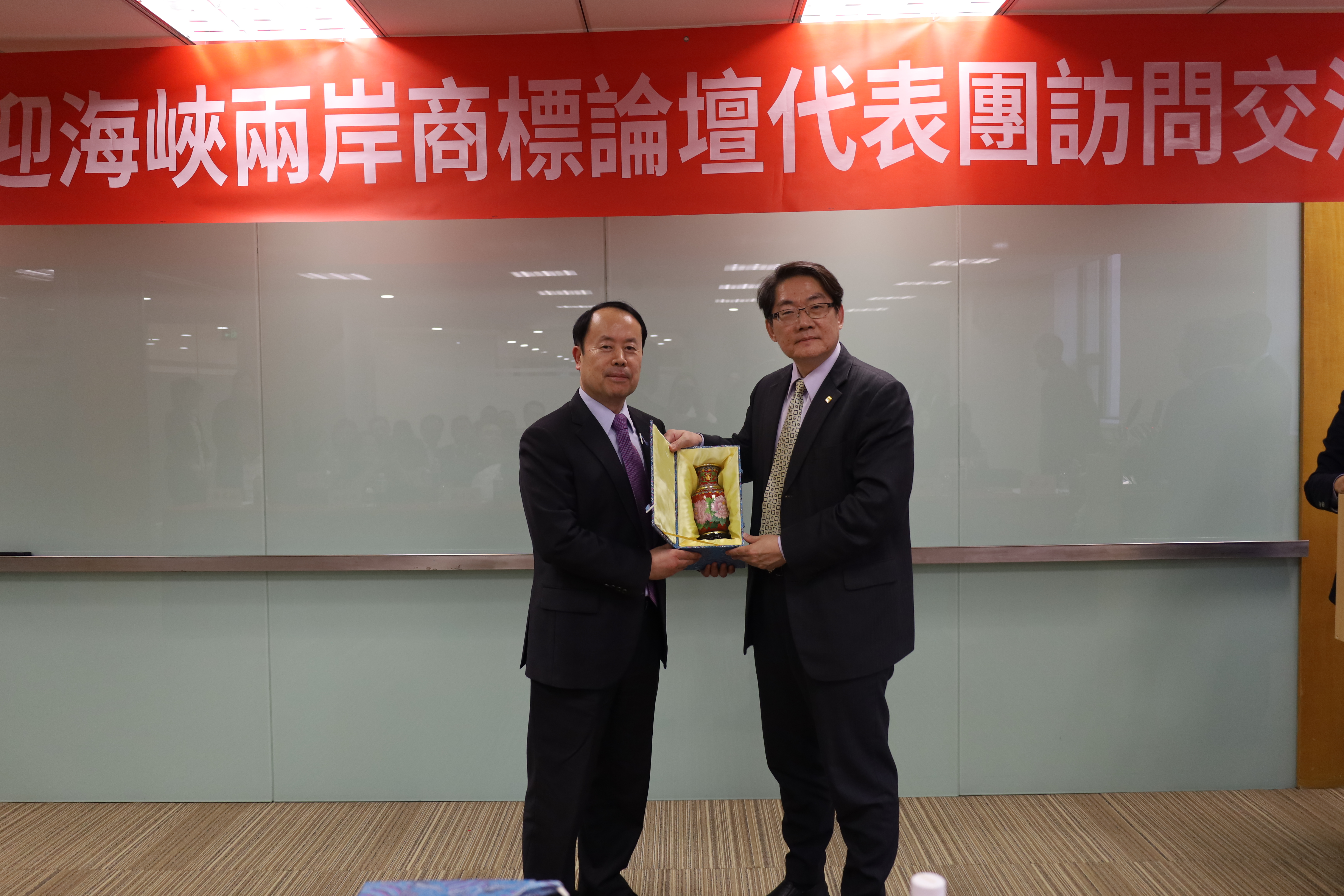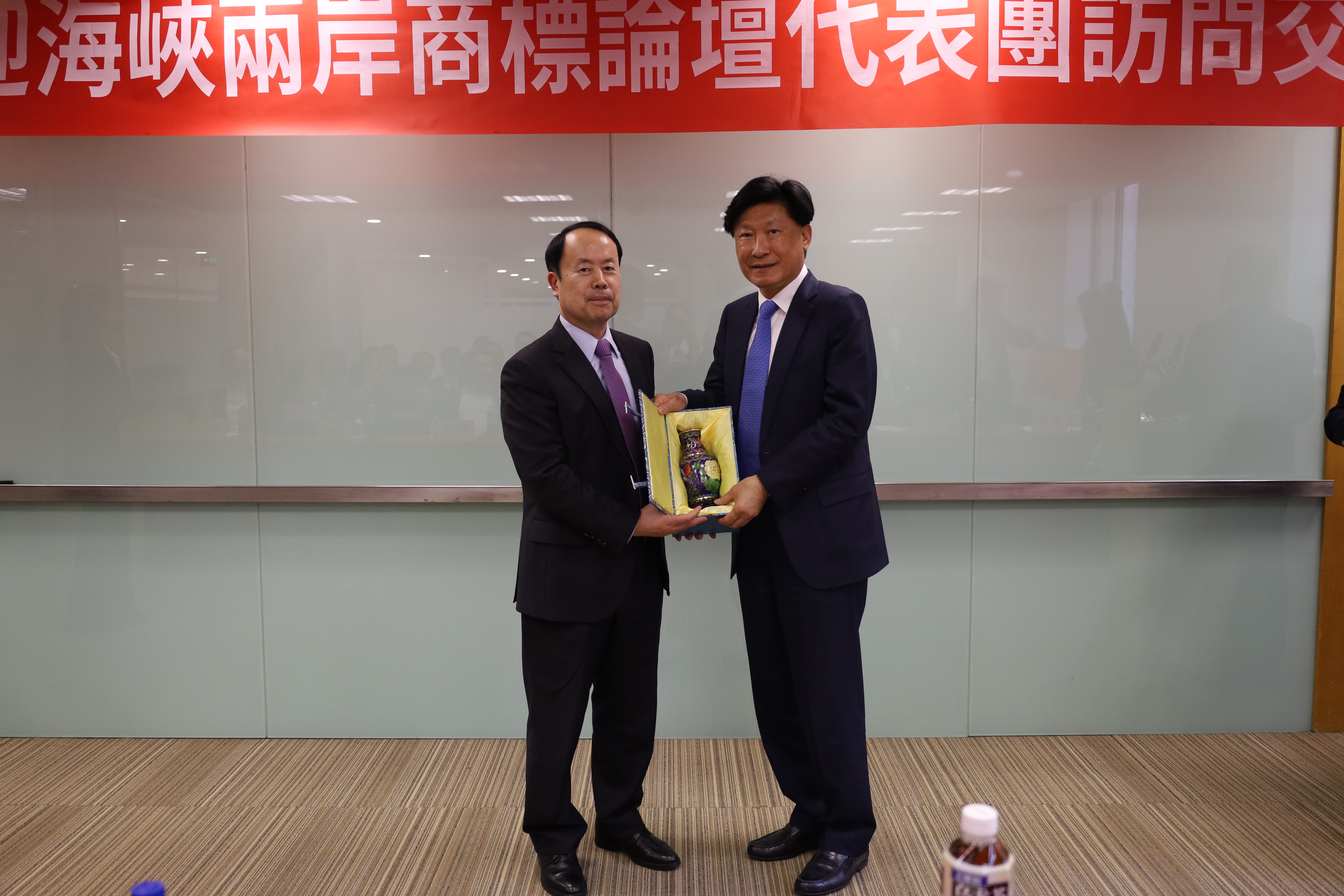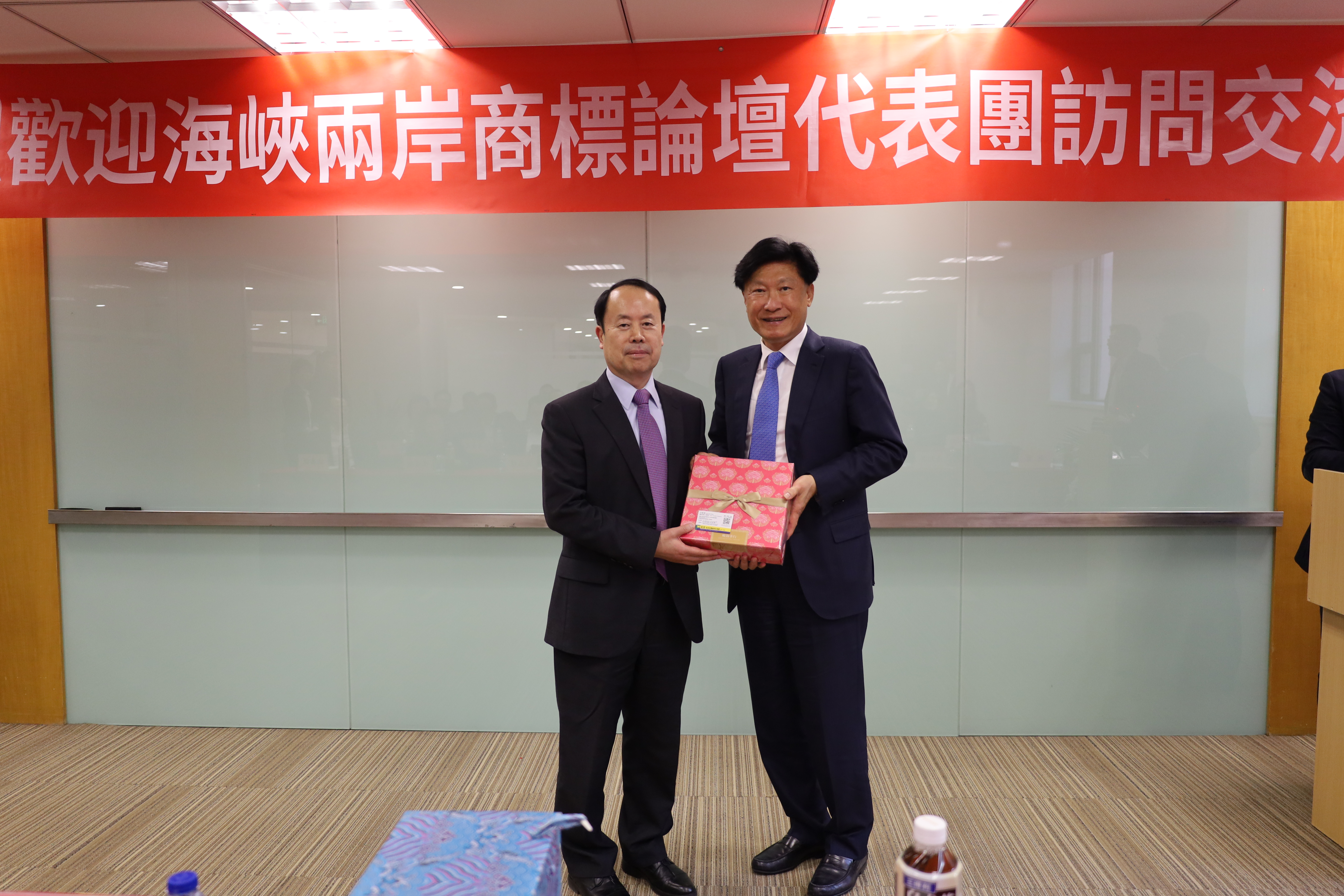 于澤輝所長對代表團(tuán)蒞臨集佳考察表示熱烈歡迎,并與海商會副會長王桂良先生、副會長兼秘書長黃旭昇先生互相交換禮物。