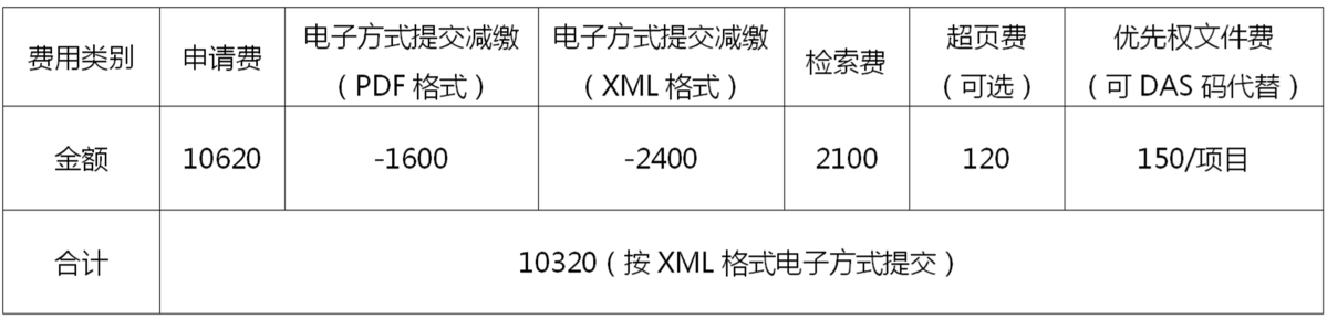 由表1和表2可知,發(fā)明專利如果國(guó)內(nèi)申請(qǐng)不涉及超項(xiàng)、超頁(yè),國(guó)際階段不涉及優(yōu)先權(quán)文件制作(或用DAS替代)、要求一項(xiàng)優(yōu)先權(quán)且不提國(guó)際初審,國(guó)內(nèi)申請(qǐng)官費(fèi)為3450元,PCT申請(qǐng)國(guó)際階段的官方費(fèi)用為 10320元(其間需注意保密審查,以確保該申請(qǐng)?jiān)趪?guó)內(nèi)獲得保護(hù)),兩階段官方費(fèi)用合計(jì)13770元。