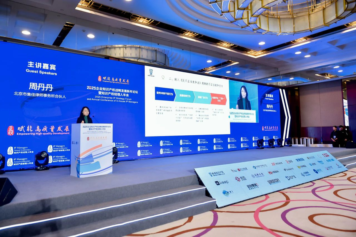 本次年會以“賦能高質(zhì)量發(fā)展”為主題,深入探討大數(shù)據(jù)、人工智能等前沿技術(shù)在企業(yè)知識產(chǎn)權(quán)領(lǐng)域的創(chuàng)新應(yīng)用。受主辦方邀約,集佳合伙人周丹丹律師為此次大會帶來主題演講,她圍繞 “《反不正當(dāng)競爭法》修改對企業(yè)知識產(chǎn)權(quán)工作的影響”這一主題,詳細(xì)說明了此次《反不正當(dāng)競爭法》(草案)的主要修訂核心內(nèi)容,分享了對《反不正當(dāng)競爭法》修改趨向的思考,并結(jié)合近十年不正當(dāng)競爭領(lǐng)域的典型案例和多年代理競爭類案件的實(shí)戰(zhàn)經(jīng)驗(yàn)對企業(yè)提出一系列企業(yè)競爭行為的合規(guī)建議,引發(fā)現(xiàn)場嘉賓與知識產(chǎn)權(quán)從業(yè)者的關(guān)注與探討。