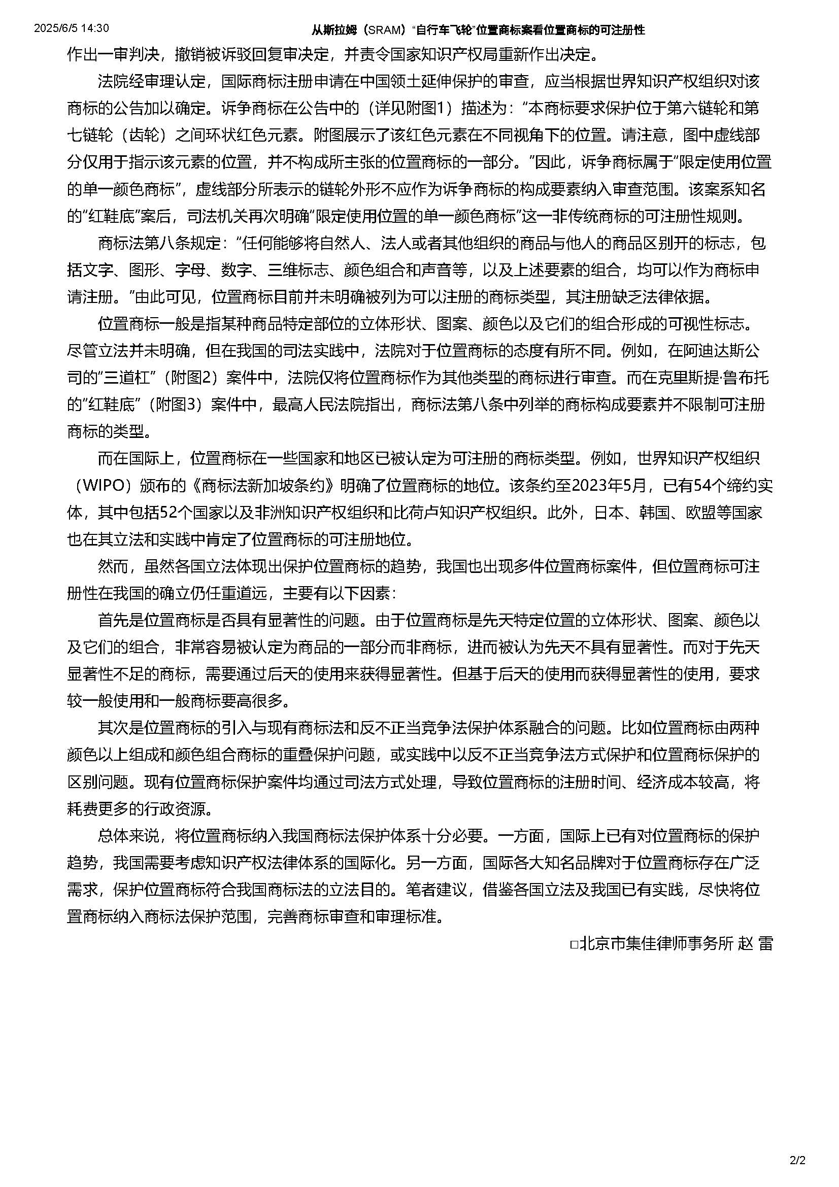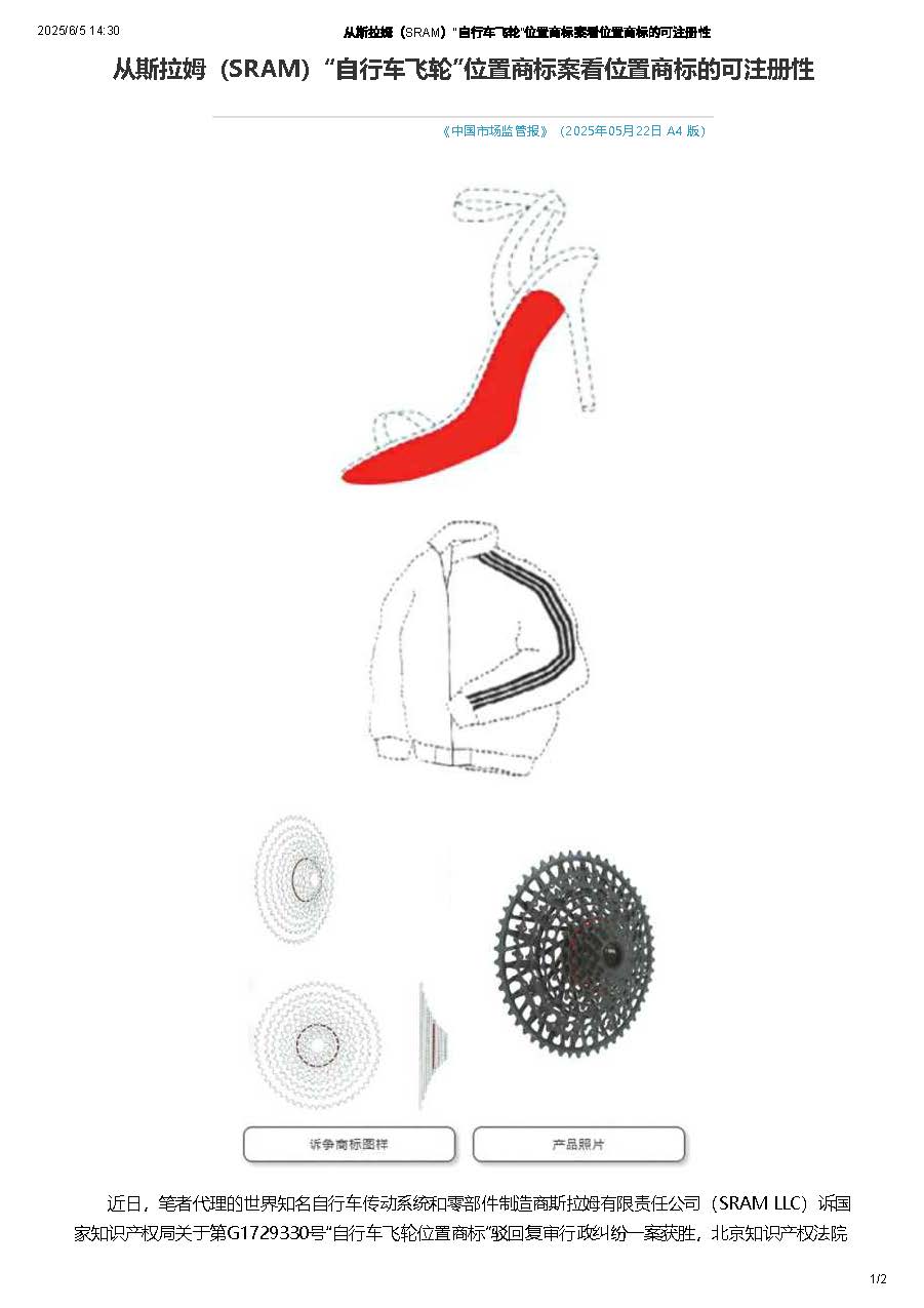 集佳文章《從斯拉姆(SRAM)“自行車飛輪”位置商標(biāo)案看位置商標(biāo)的可注冊(cè)性》在《中國(guó)市場(chǎng)監(jiān)管報(bào)》發(fā)表